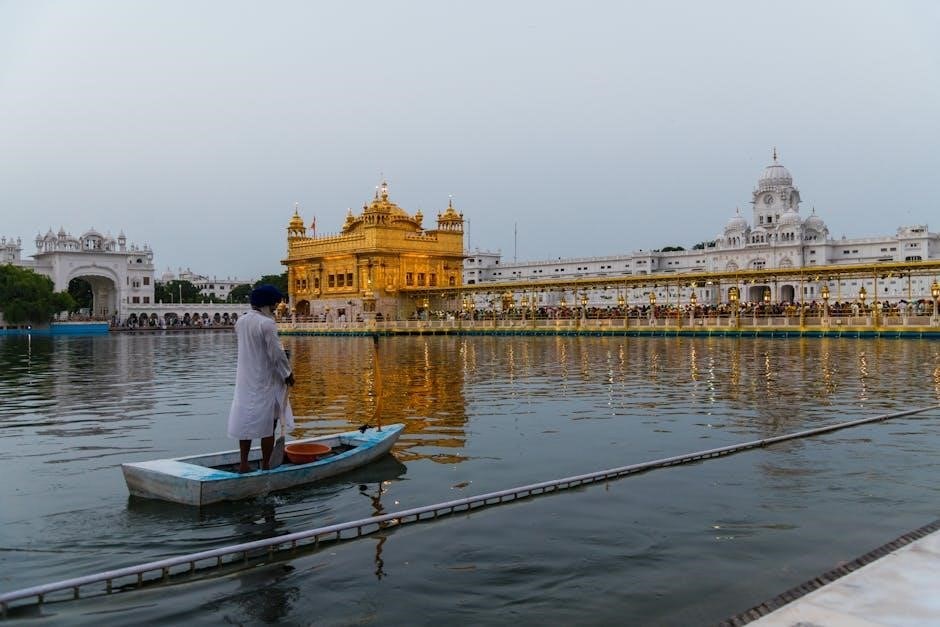 The Sukhmani Sahib holds profound cultural and religious significance, transcending its role as a spiritual text. It serves as a cornerstone of Sikh devotion, fostering a sense of unity and shared faith among followers worldwide. The PDF version has further amplified its reach, making it accessible to people across diverse cultures and languages, thus preserving Sikh heritage globally. Religiously, it strengthens the bond between devotees and their faith, offering solace and spiritual enlightenment. Culturally, it has inspired countless recitations, kirtans, and community gatherings, enriching Sikh traditions and identity. Its digital availability ensures that future generations can easily engage with this sacred text, blending tradition with modern accessibility. This blend of tradition and technology highlights its enduring relevance in both cultural and religious spheres, making it a vital part of Sikh life and global spirituality. Its impact continues to grow, shaping the spiritual and cultural landscape of Sikhism worldwide. This accessibility has also inspired new forms of devotion and education, ensuring its timeless message endures. The Sukhmani Sahib remains a powerful symbol of faith, unity, and cultural preservation. Its influence extends beyond religion, contributing to the broader cultural tapestry of communities that embrace its teachings. This ensures its legacy as a source of inspiration and guidance for generations to come. The PDF format has become a modern tool for spreading its universal message of peace and harmony, making it a cherished resource for spiritual seekers everywhere. By bridging the gap between tradition and innovation, the Sukhmani Sahib PDF has solidified its place as a cornerstone of Sikh culture and spirituality, touching hearts and minds across the globe. Its cultural and religious impact is undeniable, as it continues to inspire and uplift people from all walks of life.